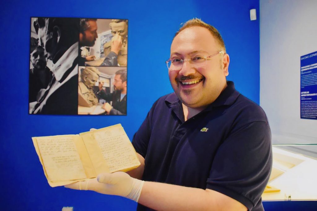 Giovanni Nappi con il manoscritto autografo de “L’Infinito” tra le mani